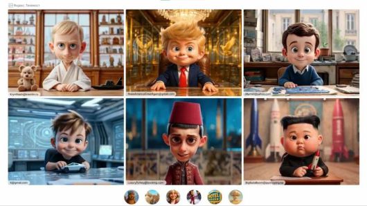 [서울=뉴시스]홍주석 인턴 기자 = 러시아 프로파간다(선전) 영상에서 블라디미르 푸틴, 도널드 트럼프, 에마뉘엘 마크롱 등 세계 각국 정상이 어린아이 모습으로 등장해 화제가 되고 있다.