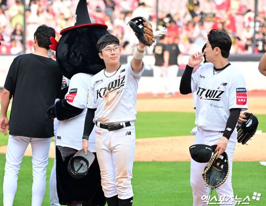 이어 "(황)재균이 형은 나와 비교할 수 없는 선수다. 지난해 부침을 겪기도 했으나 겨우내 준비하는 걸 옆에서 봤고, 그게 올 시즌 (활약으로) 이어졌다. 한편으로는 내가 다쳐서 재균이 형이 과부하에 걸려서 부상을 당한 것 같아 죄송한 마음이다. 내가 빠진 상황에서 재균이 형이 잘한 것처럼 내가 KT의 승리를 위해 최선을 다할 것이다. 재균이 형뿐만 아니라 (강)백호, (손)동현이도 건강하게 돌아왔으면 한다"고 덧붙였다.