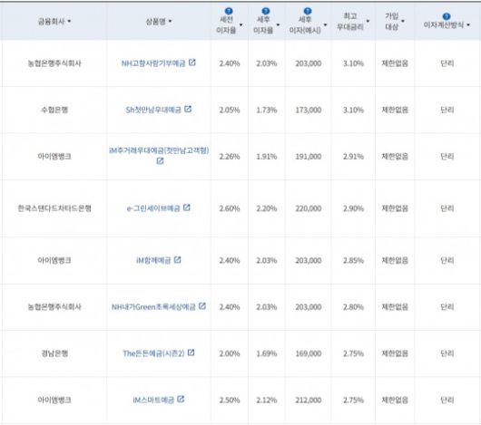 금감원은 “금융회사의 상품별 이자율 등 거래조건이 수시로 변경돼 지연 공시될 수 있으므로 거래 전 반드시 해당 금융회사에 문의해야 한다”고 밝혔다.