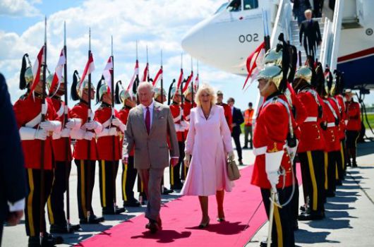 26일(현지시간) 캐나다를 국빈방문한 영국 국왕 찰스3세와 카밀라 왕비가 캐나다 오타와 공항에 도착해 환대받고 있다. 로이터연합뉴스 |