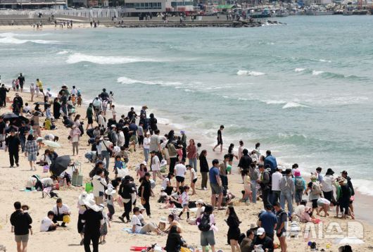 [부산=뉴시스] 하경민 기자 = 휴일인 18일 부산 해운대구 해운대해수욕장을 찾은 시민과 관광객들이 나들이를 즐기고 있다. 2025.05.18. yulnetphoto@newsis.com |