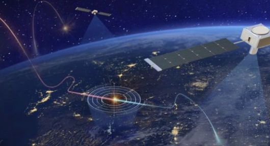 막대기 모양의 간단한 형태로 고안된 화려한 조약돌 SBI(위쪽). SBI의 배치 형태(아래쪽). 지구 자전 때문에 SBI가 항상 핵미사일 근처에 떠있을 수 없으므로 지표면 전체를 에워싸듯 그물망 형태로 배치해야 한다. 레딧, 전략국제문제연구소(CSIS) 캡처 |