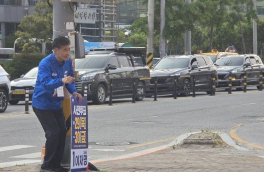 ▲이원택 더불어민주당 전북 의원이 길거리에서 사전투표를 독려하는 모습 ⓒ이원택 의원 페이스북 |