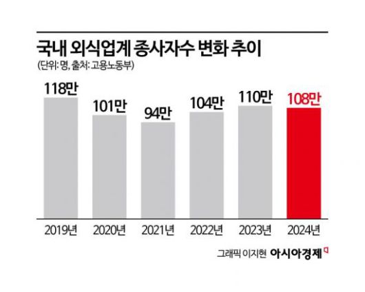 외식업 부진은 고용시장에도 영향을 미쳤다. 음식점 및 주점업 종사자 수는 2021년 94만명 이후 점차 증가세를 보였지만 지난해 108만명으로 2023년(110만명) 대비 1.6% 감소했다. 코로나19의 영향에서 벗어나기 시작한 2021년부터 외식업계의 입직자 수는 이직자 수를 추월하기 시작했고, 이러한 추세는 2023년까지 지속됐지만, 지난해에는 이직자가 입직자보다 소폭 증가하며 종사자 수가 줄었다.