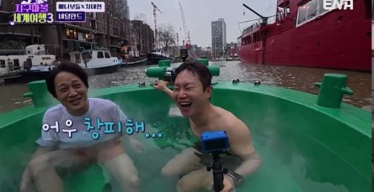 그리고 ‘7박 8일’ 팀의 하이라이트, 욕조온천 보트 체험이 시작됐다. 도심 속 운하 한가운데서 온천욕을 즐길 수 있는 이색 체험에 빠니보틀이 한껏 들뜬 것과는 달리, 차태현은 오픈된 곳에서 하는 공개 목욕(?)에 “너무 창피해!”라며 민망함을 감추지 못했다. 게다가 현지인들조차 신기해하는 ‘포토 타깃’이 되자, 물 속으로 몸을 숨기기도 했다. 빠니보틀 역시 특이한 걸로 치면 역대급임을 인정했다. 어느새 차태현도 "노알코올 숙취여행"이라며 네덜란드 여행에 빠져들었다.