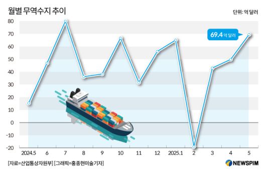 1~5월 누적 무역수지도 전년 동기보다 42억달러 늘어난 190억달러 흑자를 기록했다.