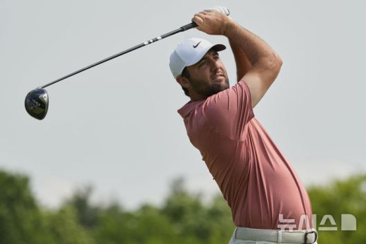 [더블린=AP/뉴시스] 남자 골프 세계랭킹 1위 스코티 셰플러(미국)가 1일(한국 시간) 미국 오하이오주 더블린의 뮤어필드 빌리지 골프클럽(파72)에서 열린 미국프로골프(PGA) 투어 메모리얼 토너먼트 3라운드 5번홀에서 티샷하고 있다. 2025.06.01. |