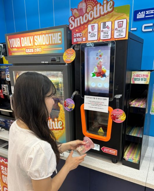 GS25는 스무디 도입을 위해 편의점 특성에 맞는 전용 기기와 상품(냉동컵과일)을 개발했다. 해당 기기는 점포의 운영 편의를 위해 자동 세척 기능이 탑재됐으며 직관적인 터치스크린으로 누구나 쉽게 이용할 수 있다. 고객이 냉동 컵과일에 부착돼 있는 QR스캔 후 기기에 넣기만 하면 약 1분 이내로 스무디가 완성되는 방식이다.