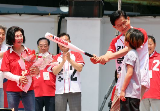 이어 "부패한 공직자들 반드시 가야 할 곳 가야 하는데, 어려우니까 방탄조끼 입고 유세한다"며 "공직선거법에서 '거짓말 죄'를 빼버렸다. 경찰봉 뺏어서 경찰관 두들겨 패는 적반하장"이라고 비판했다.