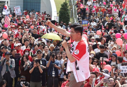 김문수 국민의힘 대선 후보가 1일 경기도 수원 영통구 수원컨벤션센터 앞 광장에서 열린 선거유세에서 연설하고 있다.성형주 기자 foru82@sedaily.com[ⓒ 서울경제, 무단 전재 및 재배포 금지]