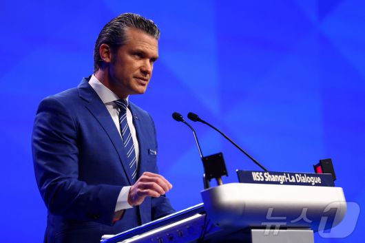 31일(현지시간) 피트 헤그세스 미국 국방장관이 싱가포르에서 열린 제22차 아시아안보회의(샹그릴라 대화)에 참석해 연설하고 있다. 2025.05.31 ⓒ 로이터=뉴스1 ⓒ News1 김지완 기자 |