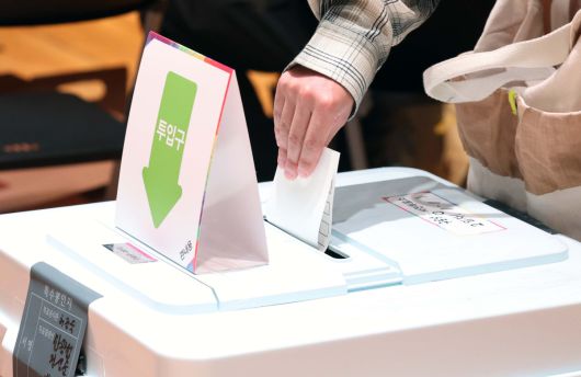 제21대 대통령선거 사전투표 이틀째인 30일 서울 구로구 구로구민회관에 마련된 사전투표소를 찾은 유권자들이 투표를 하고 있다. 신태현 기자 holjjak@ |