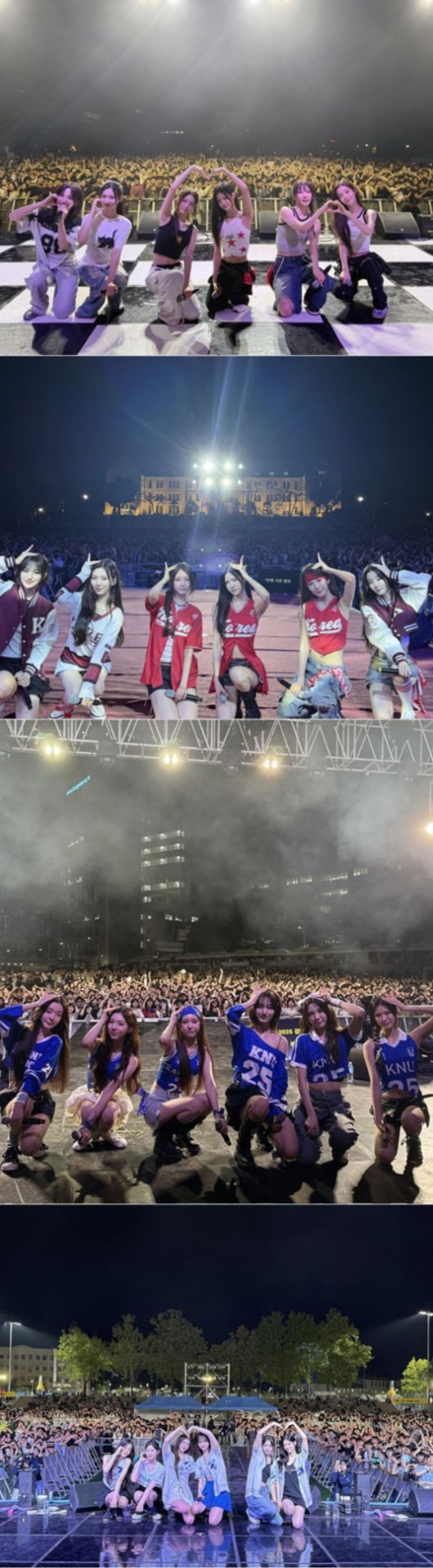 21일과 22일에는 각각 고려대, 강남대 축제 무대에 올랐다. 특히 고려대 무대에선 밴드 동아리와의 협업과 리더 카시아의 머리 묶는 퍼포먼스가 공식 SNS에 공개되며 8일 만에 300만 뷰를 돌파하는 등 ‘대학축제 레전드 무대’로 회자되고 있다. 23일 전북대 공연에선 관객들의 떼창까지 이끌어내며 신예답지 않은 무대 장악력을 입증했다.