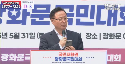 윤 전 대통령은 지난달 31일 서울 광화문 광장에서 전광훈 사랑제일교회 목사 주도로 열린 대한민국바로세우기운동본부 집회에서 이동호 전 여의도연구원 상근부원장을 통해 메시지를 전달했다. 윤 전 대통령은 “이 나라의 자유민주주의를 지키고 나라를 정상화하기 위해서 오는 6월3일 반드시 투표장에 가셔서 김문수 (국민의힘) 후보에게 힘을 몰아주시길 호소드린다”며 “김문수 후보에게 투표하시면 김문수 대통령이 되고 이 나라의 자유와 미래를 지킬 수 있다”고 밝혔다.