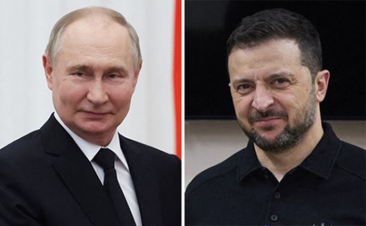 블라디미르 푸틴 러시아 대통령(왼쪽), 볼로디미르 젤렌스키 우크라이나 대통령. AFP=연합뉴스 |