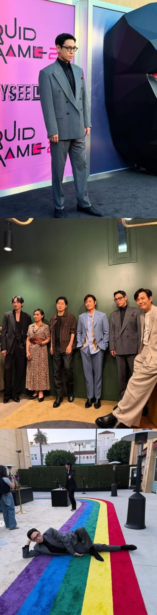 이날 최승현은 오는 27일 공개를 앞둔 '오징어 게임3'의 황동혁 감독과 이정재, 이병헌, 박성훈, 강애심과 함께 등장해 '오징어 게임3'을 열혈 홍보했다.