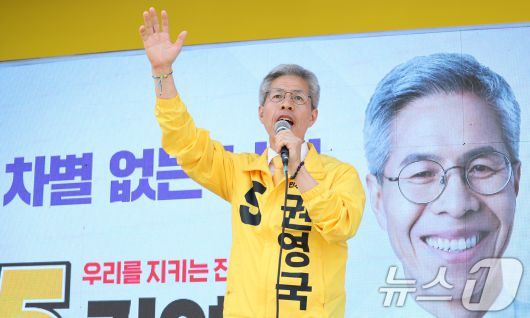 (서울=뉴스1) 신웅수 기자 = 권영국 민주노동당 대통령 후보가 1일 오후 서울 마포구 경의선숲길에서 시민들에게 지지를 호소하고 있다. 2025.6.1/뉴스1phonalist@news1.krCopyright ⓒ 뉴스1. All rights reserved. 무단 전재 및 재배포, AI학습 이용 금지.