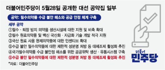 앞서 지난달 28일 민주당이 공개한 '제21대 대통령선거 정책공약집'엔 '수급 불안 필수의약품에 대한 제한적 성분명 처방 등 대체조제 활성화 추진'이라는 내용이 담겼다. 성분명 처방이란, 의사가 처방전에 약의 상품명이 아닌 성분명을 기재하는 것을 가리킨다. 예컨대 '타이레놀'(상품명)이 아닌 '아세트아미노펜'(성분명)을 처방전에 쓰는 식이다.