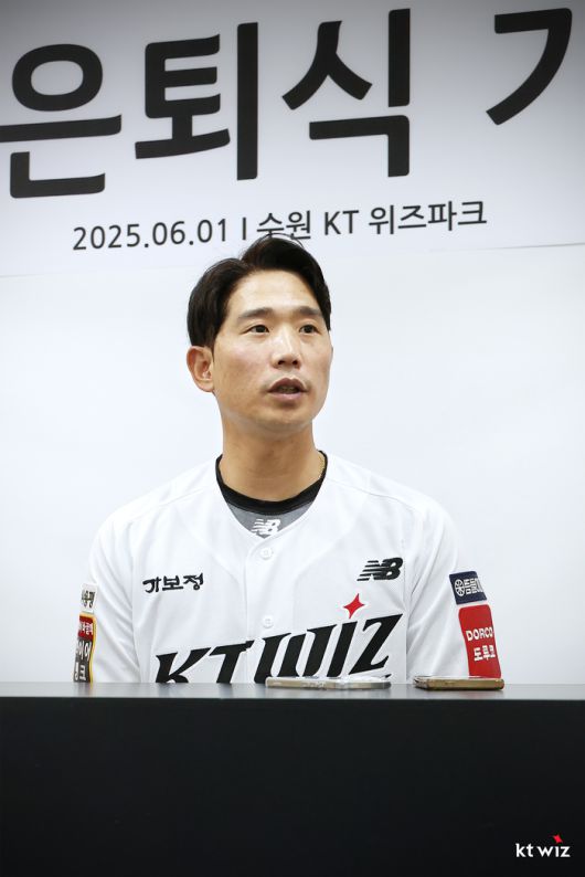 박경수 코치가 은퇴식 기자회견에서 질의 응답을 하고 있다. 사진 | KT 위즈 |