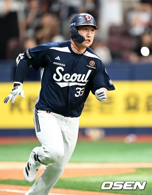 [OSEN=고척, 이대선 기자] 1일 오후 서울 고척스카이돔에서 2025 신한 SOL Bank KBO리그 키움 히어로즈와 두산 베어스의 경기가 열렸다. 키움은 알칸타라, 두산은 최승용을 선발 투수로 내세웠다. 9회초 무사 1루에서 두산 김인태가 우전 안타를 치고 그라운드를 달리고 있다. 2025.06.01 /sunday@osen.co.kr