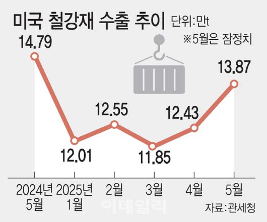 다만 전문가들은 지난 3월 시행된 25% 관세 부과 영향이 본격화되지 않다고 보고 있다. 산업연구원은 최근 발간한 ‘미국의 보편관세 공표 후 철강 수출 동향 및 시사점’ 보고서에서 “관세 부과에 따른 영향은 일반적으로 시행 이후 2~3개월 뒤부터 본격화된다”며 “최근 수출 감소는 관세 영향보다는 지난해 수출 호조에 따른 기저효과로 봐야 한다”고 분석했다.