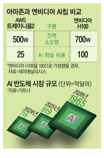 이곳에서 구동되고 있는 AWS의 '트레이니움2'는 현재 AI를 학습하기 위해 가장 많이 쓰고 있는