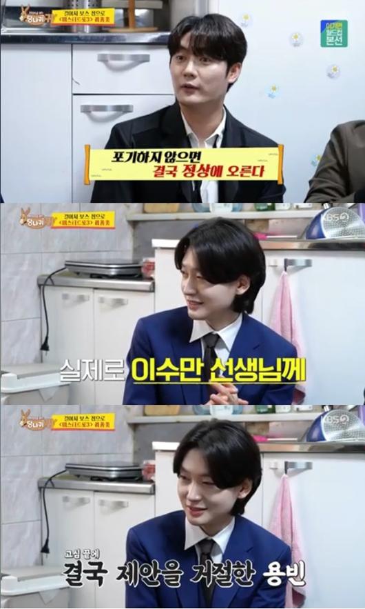 김용빈은 이수만 대표에게 샤이니 멤버 제안을 받았던 사실을 공개하면서 고심 끝에 거절했었다고 털어놨다.