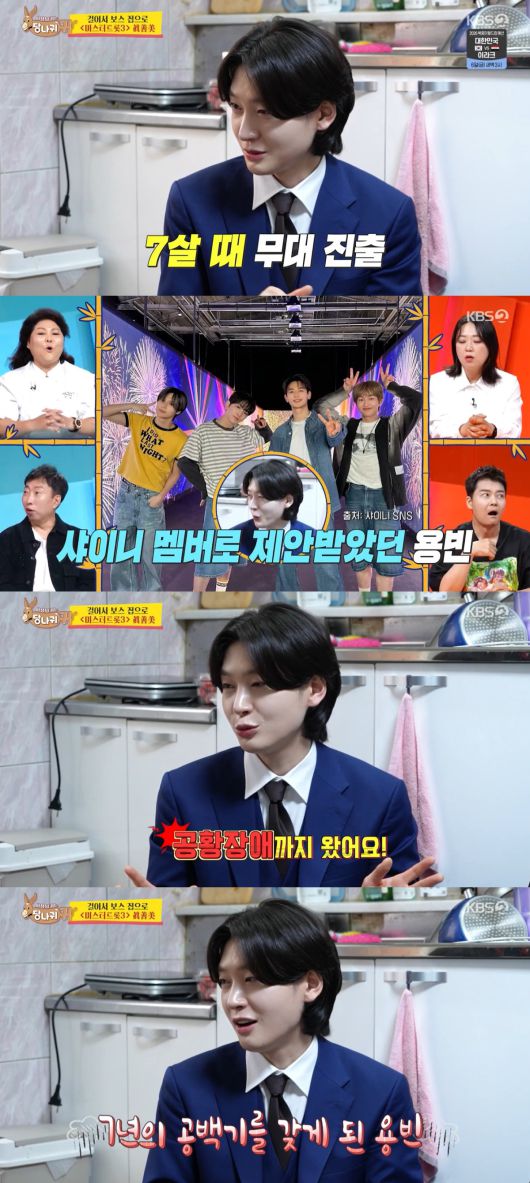 7살 때부터 노래를 했다는 김용빈은 어느덧 데뷔 22년 차 가수로 성장했다. 4살 때 할머니 아래서 자라며 동요보다 트로트를 더 먼저 배웠다고. 과거 아이돌의 아버지 이수만으로부터 ‘샤이니’ 멤버 제안을 받기도 했지만 거절했다고 전했다.