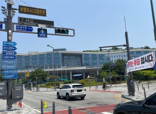 대선을 이틀 앞둔 1일 정부세종청사 종합안내실 앞으로 차량과 자전거가 달리고 있다. 바깥 활동 하기 좋은 주말이었지만, 거리는 썰렁했다. 공무원 비율이 높은 도시 특성상 정치적 중립을 지키려는 경향이 강하고, 이 때문에 세종시 사람들은 정치적 성향을 잘 드러내지 않는다. 그러나 지난달 29, 30일 치러진 사전투표에서 전국에서 네 번째로 높은 투표율을 기록, 그 표심에 관심이 쏠린다. 세종=정민승 기자 |