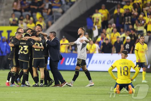 플레이오프 승리 후 기뻐하는 LA FC선수들ⓒ AFP=뉴스1 |