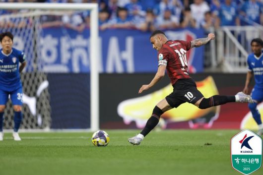 수원이 아쉬움을 삼켰다. 전반 17분 우측에서 세라핌이 수비를 잘 따돌리고 김지현에게 내줬다. 김지현이 돌파한 뒤 페널티 박스 안에서 이상혁의 태클에 걸려 넘어졌고 페널티킥이 선언됐다. 파울리뇨가 키커로 나섰는데 슈팅이 김형근 골키퍼 선방에 막혔다.