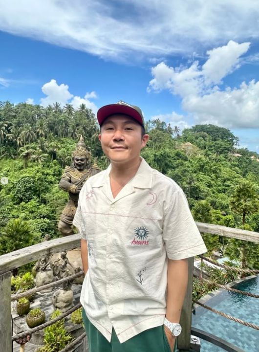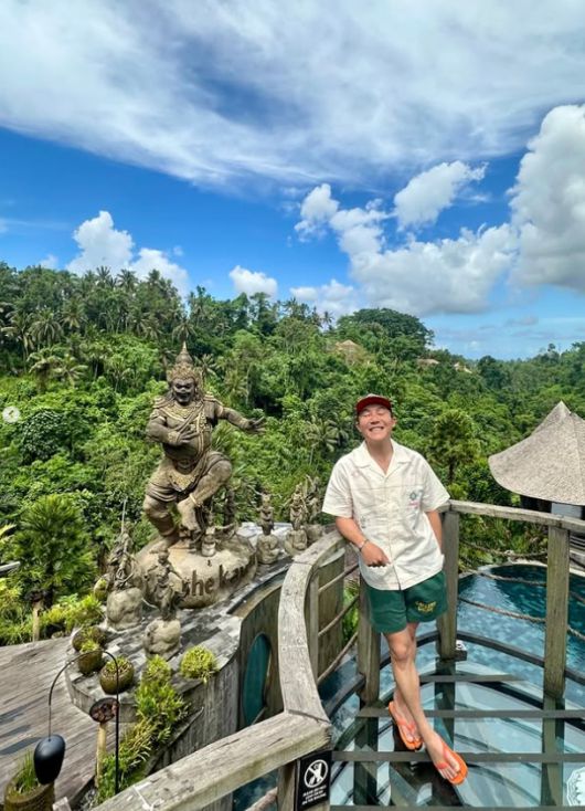 사진 속 조세호는 파란 하늘과 울창한 숲, 이국적인 조각상들이 어우러진 발리의 자연을 배경으로 다양한 포즈를 취하고 있다. 반팔 셔츠와 반바지, 모자, 오렌지색 슬리퍼 등으로 꾸민 휴가 패션을 선보였다.