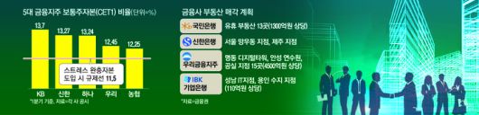 현재 5대 금융지주(KB·신한·하나·우리·NH농협) 기준으로는 보통주자본 비율이 규제 기준인 9%보다 높은 상황이다. 하지만 주요 은행과 금융지주는 연말 금융당국이 스트레스완충자본을 도입해 규제선을 11.5%까지 높일 것을 대비하고 있다. 까딱하다간 제재 대상이 된다는 위기감에 선제적으로 부동산부터 내다 팔고 있는 것이다. 보통주자본을 다소 과할 정도로 쌓아두는 게 안전하다는 공감대도 퍼지고 있다. 한 금융지주 관계자는 “경기 침체가 장기화하며 금융그룹이 인수·합병(M&A) 시장에서 역할을 해줘야 하는 상황인데 모두 보통주자본 비율을 맞추느라 적극적으로 나서지 못하고 있다”며 “유휴 부동산 매각을 통해 이 비율을 안전선까지 높이면 투자에 여력이 생길 것”이라고 전했다.