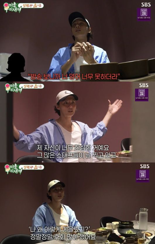화상 영어 수업도 받으며 오전을 바쁘게 보낸 그다. 윤시윤은 지난해 돌연 필리핀 어학연수를 다녀온 바 있다. 그는 "어느 순간, 엄마한테 말도 안 되는 영어 교재를 받았는데 방송 보니 '너 영어 못한다'고 하더라. 그걸 보고 너무 한심했다"며 "현장에서 외국인 스태프들과 함께 해야 할 일이 많은데도, 나는 아무 준비가 안 돼 있었다"고 털어놨다.