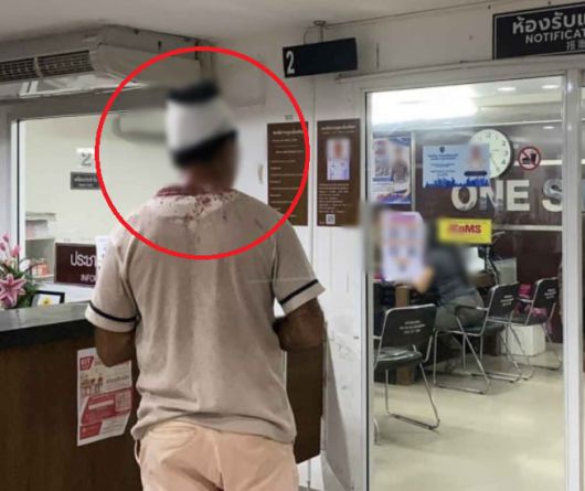 폭행을 당한 관광객 남성이 피를 흘려 머리에 붕대를 감고 있는 모습./사왕보리불 재단 |