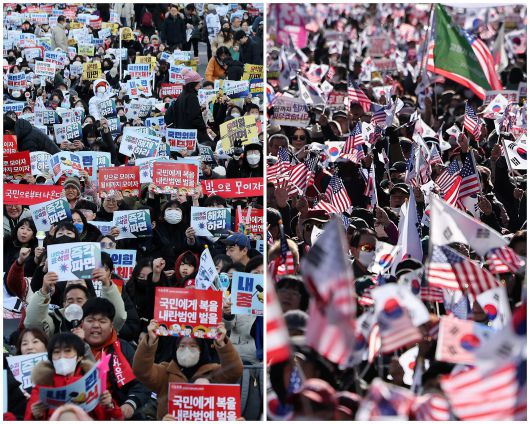 지난 1월 25일 오후 서울 도심 경복궁과 광화문 일대에서 열린 윤석열 대통령 탄핵 찬반 집회 모습./뉴스1 |