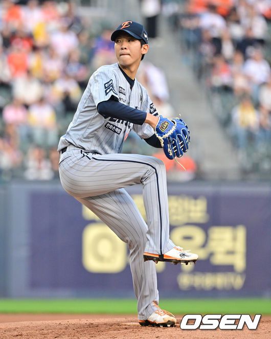 하지만 3~5회는 실점 없이 빠르게 넘어갔다. 3회 박건우를 몸쪽 낮게 뚝 떨어지 느린 커브로 헛스윙 삼진 처리하며 삼자범퇴했고, 4회에는 좌익수 문현빈의 보살로 수비 도움을 받아 공 7개로 끝냈다. 5회에도 선두타자 김정호에게 초구 안타 허용 이후 후속 3타자를 7개의 공으로 정리하며 안정감을 보였다.