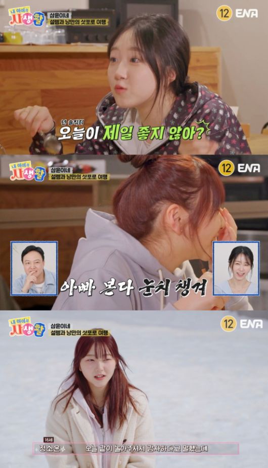 1일 방송된 ENA '내 아이의 사생활'(이하 '내생활')에는 정웅인의 세 딸 삼윤이(세윤, 소윤, 다윤)의 일본 삿포로 여행 마지막날 풍경이 전파를 탔다.