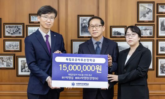 1일 숙명여대에 따르면 독립운동가 고 박도철 선생의 증손녀인 박명현 숙명여대 연구교수는 아버지 박영섭씨와 함께 ‘학내 독립유공자 후손을 위한 장학금으로 써달라’며 보훈급여 1500만원을 지난달 15일 모교에 전달했다.