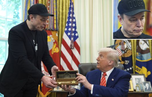 도널드 트럼프 미국 대통령이 일론 머스크 테슬라 최고경영자(CEO)의 미 정부효율부(DOGE) 수장직 퇴임을 기념해 황금 열쇠를 선물했다. 그러나 최근 트럼프 대통령이 의욕적으로 추진 중인 감세 법안을 머스크가 정면으로 비판하는 등 둘 사이의 브로맨스가 예전 같지 않다는 말이 나온다.