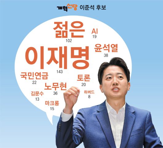 2030세대를 집중 공략했던 이준석 후보는 ‘젊은’이란 표현도 102회 사용했다. 정책 측면에서도 젊은 층에서 관심이 많은 ‘국민연금’을 22회, ‘인공지능(AI)’을 19회 썼다. 주요 정치인 중에선 노무현 전 대통령(36회)과 에마뉘엘 마크롱 프랑스 대통령(15회)을 자주 언급했다. 지지기반이 취약한 상태에서 출발해 ‘대역전’ 끝에 당선에 이른 노 전 대통령과 만 39세라는 젊은 나이에 취임한 마크롱 대통령의 이미지를 본인에게 투영하려는 시도라는 분석이 나온다.