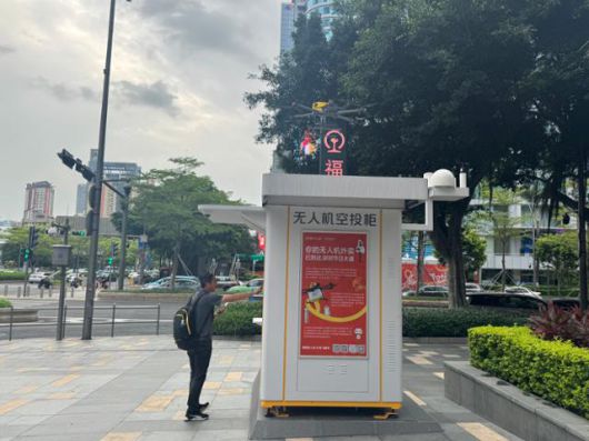 지난달 24일 중국 광둥성 선전시에서 고층 빌딩숲 사이로 무인기(드론)가 상자를 매달고 '위잉위잉' 소리를 내며 날아왔다. 도착 지점은 보행 도로에 설치된 대형 자판기 같은 형태의 '드론 공중 드롭함'. 드론은 드롭함 위에 정확히 착륙해 상자를 내려놨고, 다시 부상하더니 홀연히 사라졌다. 중국 배달 플랫폼 메이퇀이 2017년부터 베이징, 상하이, 선전, 광저우 등 대도시에서 운영 중인 드론 배달 서비스다. 고객이 휴대폰 앱으로 음식을 주문하면 배달원이 받아 수직이착륙장인 버티포트가 있는 건물 옥상으로 운반하고, 이후 드론이 가져다 지정된 드롭함에 내려놓는 식이다.