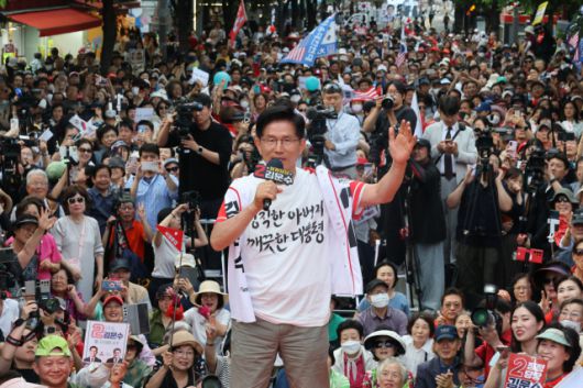 ▲국민의힘 김문수 대선 후보가 1일 서울 서대문구 신촌역에서 열린 집중유세에서 지지를 호소하고 있다. ⓒ연합뉴스 |