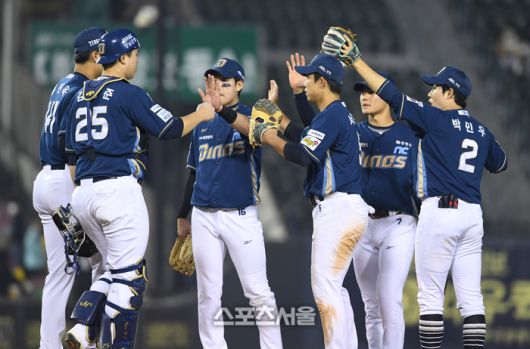 NC 선수들이 잠실구장에서 열린 2025 KBO리그 LG와의 경기에서 승리한 뒤 하이파이브를 하고 있다. 잠실 | 박진업 기자 upandup@sportsseoul.com |
