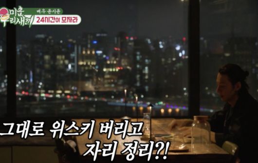 그리고 그날 저녁, 윤시윤은 ‘핑거푸드 3개’로 간소한 식사를 마치고 위스키 향만 맡으며 허기를 달랬다. 실제로 그는 위스키를 마시지 않고 혀에 몇 방울만 떨어뜨린 후 곧바로 버렸다. 이에 대해 윤시윤은 “로버트 다우니 주니어가 작품 중 향만 즐긴다더라. 나도 도움을 받았다”며, “술은 알코올이라 체지방 관리에 방해된다”고 설명했다.