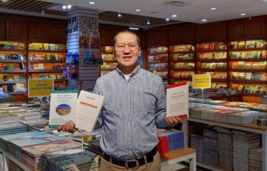몽한 사전(용어집)을 만든 몽골인 한국어 강사 바트도르찌가 울란바토르 시내 서점에서 판매 중인 자신의 책을 들어 보이고 있다. 바트도르찌 제공 |