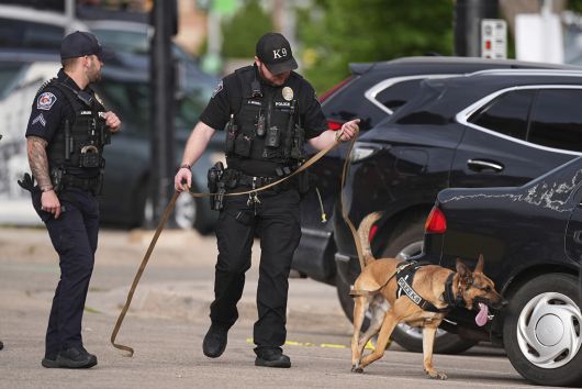 1일(현지시간) 미국 콜로라도주 볼더에서 친이스라엘 모임을 겨냥한 것으로 추정되는 공격이 발생한 후 현장을 경찰들이 둘러보고 있다. AP연합뉴스 |
