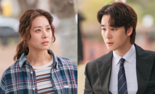 공개된 스틸은 백설희(장신영 분)와 김선재(오창석)의 예사롭지 않은 관계성을 암시한다. 두 사람이 마주하고 서 있는 것만으로도 긴장감 넘치는 대립각이 형성된다.