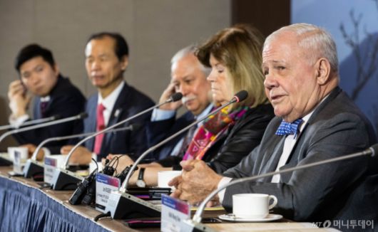 짐 로저스 로저스홀딩스 회장이 9일 오전 강원도 평창군 대관령면 알펜시아컨벤션센터에서 열린 2020 평창평화포럼 공식 기자회견에서 취재진 질문에 답변하고 있다. 20200209 사진공동취재단 뉴스1 이재명 기자 /사진=사진공동취재단 |