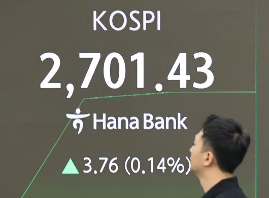 이날 오전 9시 47분 현재 코스피 지수는 전 거래일 대비 5.87포인트(0.22%) 오른 2703.54을 나타냈다.